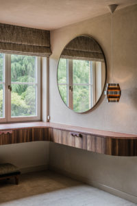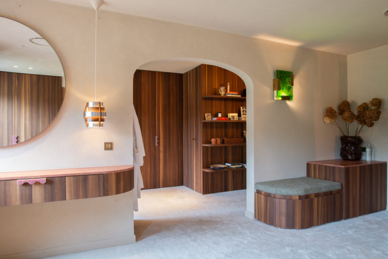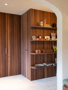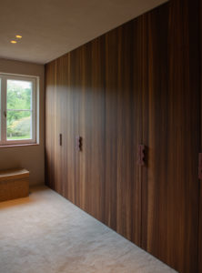 Ensemble de la pièce dressing réalisé sur mesure en placage mélèze fumé.